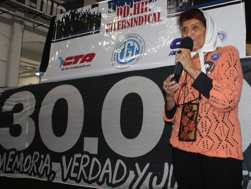 “Con esto también queremos ayudar a saldar la historia de las víctimas, de los Hijos, porque cuando se nos vaya la última madre, la última abuela, los hijos no volverán a ser huérfanos, los Hijos serán los hijos del movimiento obrero argentino. Los Hijos serán los testigos de esa generación que lo dio todo y es un orgullo enorme que esto lo podamos decir en el templo del horror, en el campo de exterminio. Aquí, donde físicamente miles y miles de compañeros padecieron todo lo que sabemos que padecieron y hasta les quitaron la posibilidad de tener un sitio físico donde se los pueda recordar. La mayoría de ellos fueron arrojados al mar.”