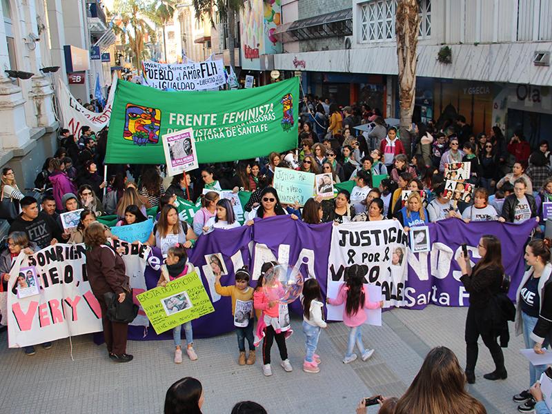 En la lectura del documento firmado por todas las organizaciones, entidades y espacios multisectoriales que conforman la Mesa Ni Una Menos Santa Fe se reclamó “Justicia por cada una de las mujeres que asesinaron, justicia por todas nuestras mujeres asesinadas, basta de impunidad a todos los femicidas, travesticidas, acosadores, violentos, tratantes y proxenetas. Vivas, libres y soberanas nos queremos. Basta de matarnos”.