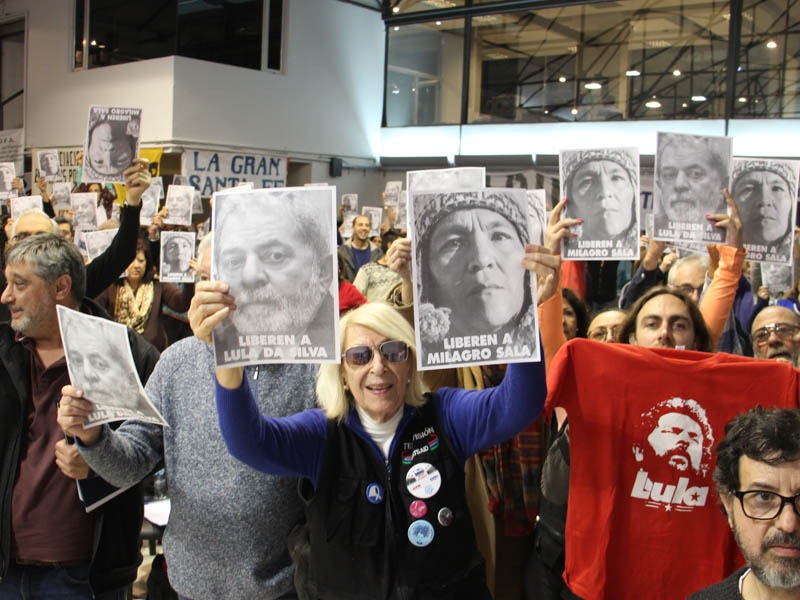 Solicitamos la libertad de Milagro Sala, la de todos los presos políticos de Argentina y la de Lula en Brasil. Venimos a reivindicar nuestra soberanía sobre Malvinas y exigimos el mar para Bolivia.