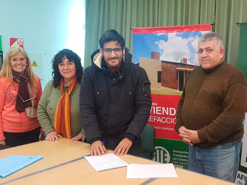 Este viernes 9, en la sede gremial de la Asociación Trabajadores del Estado -ATE- Santa Fe, tres nuevas trabajadoras/es procedieron a la firma definitiva como beneficiarios del Programa Vivienda y Refacción.