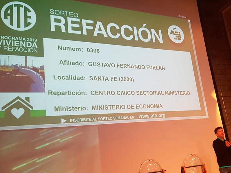 Trabajadores/as de Grutly, Santa Fe, Baigorria, Rosario, Las Rosas, San Lorenzo, fueron los beneficiarios/as de los sorteos de las Líneas Refacción y Vivienda. Continúa abierta la inscripción para acceder a las 240 soluciones habitacionales que ATE propone para sus afiliados/as durante todo el año.