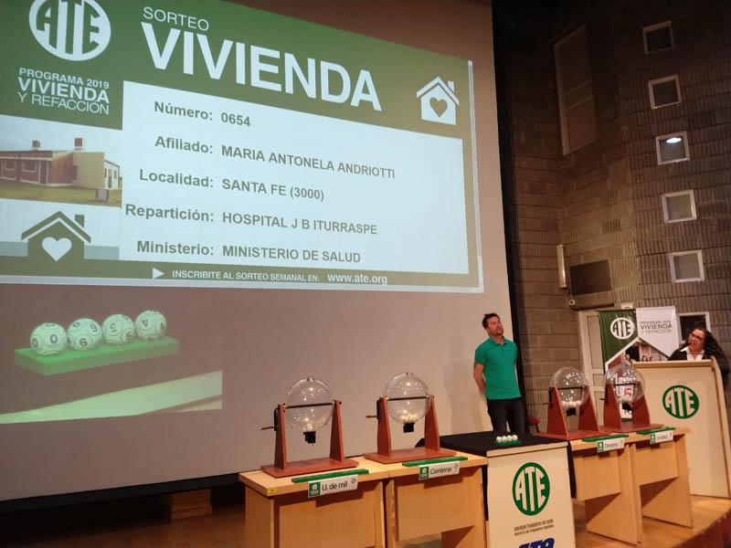 Como cada miércoles hasta fin de año, se realizó un nuevo sorteo, el undécimo, del Programa ATE Vivienda y Refacción, por el que ATE Santa Fe pone a disposición 240 soluciones habitacionales para sus afiliados/as comprendidos en la Ley 10.052 de Paritaria de la Administración Pública y en la 13.608 del personal del Tribunal de Cuentas.