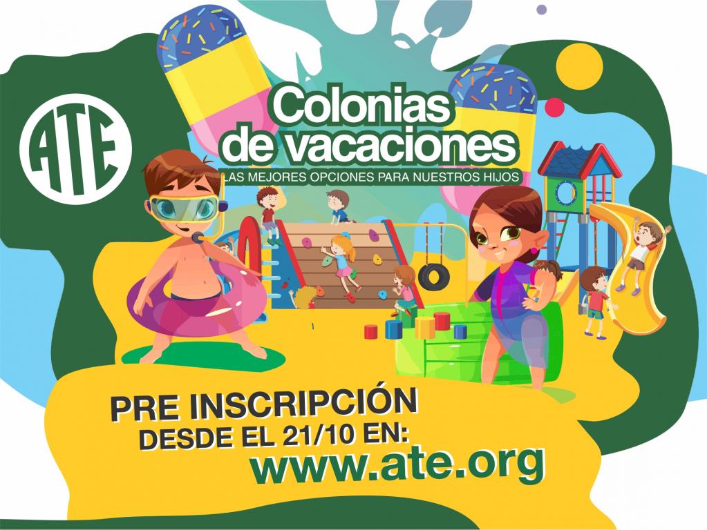 La pre-inscripción a las diferentes propuestas de Colonias de Vacaciones con las que ATE tiene convenio se realizará en ATE Mutual. Descuento para hermanos. Cupos limitados.