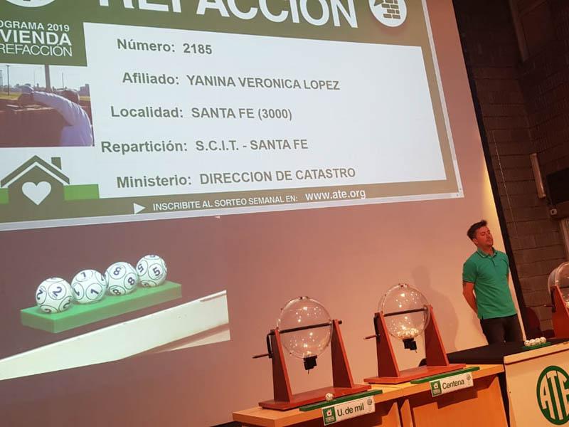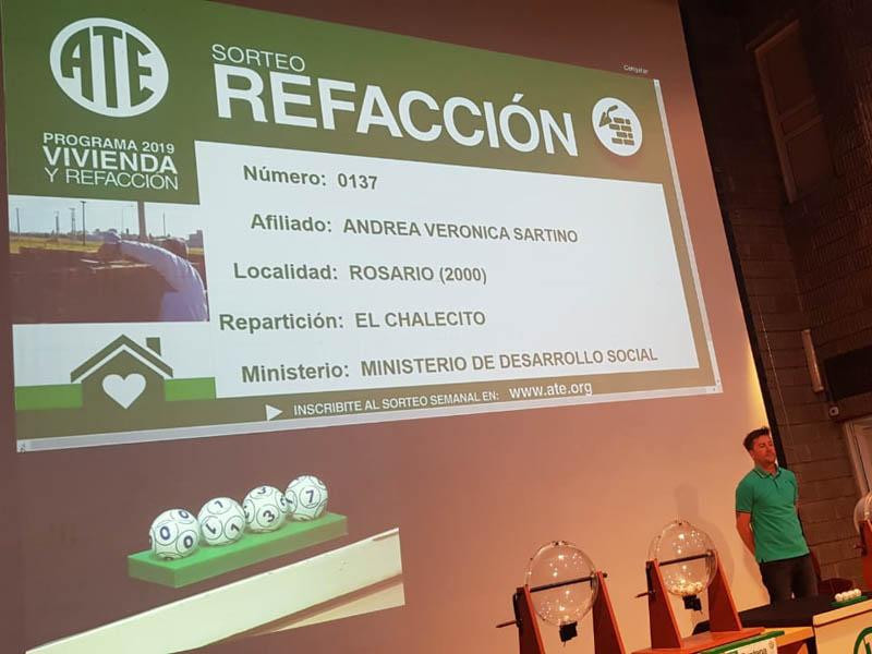 Este miércoles 23 de octubre se realizó el decimoctavo sorteo de la Edición 2019 del Programa ATE Vivienda y Refacción, con 240 soluciones habitacionales que el gremio este año pone a disposición de sus afiliados/as comprendidos en la Ley 10.052 de paritaria de la Administración Pública o en la 13.608 del personal del Tribunal de Cuentas.